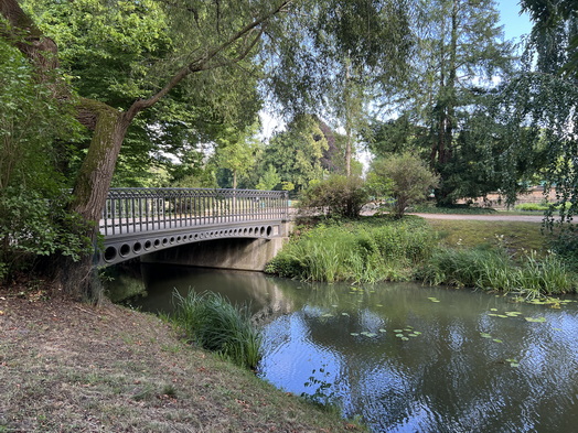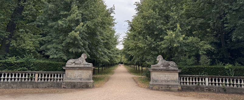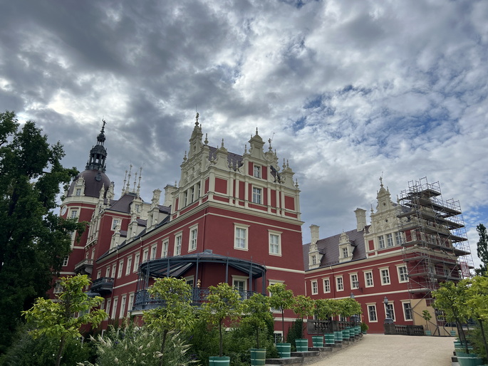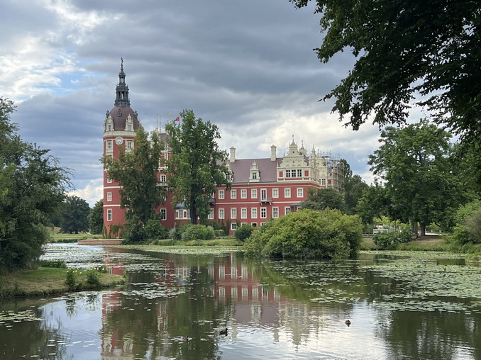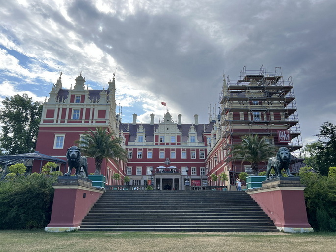 ما اتومبیل را در یک پارکینگ عمومی که نزدیک کاخ موسکاو بود پارک کردیم و وارد محوطه پارک شدیم. این مجموعه توسط پرنس هرمان فون پیوکلر-موسکاو در قرن 18 در این منطقه به سبک رمانتیک انگلیسی، با چمنزارهای وسیع، مسیرهای پرپیچوخم، پلهای زیبا و دریاچههای مصنوعی طراحی و اجرا شده است.