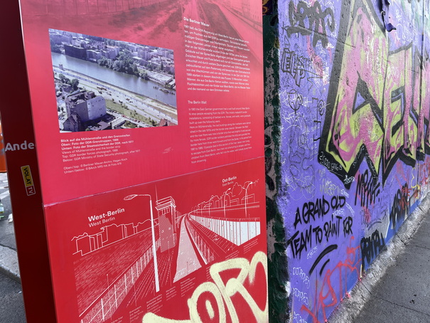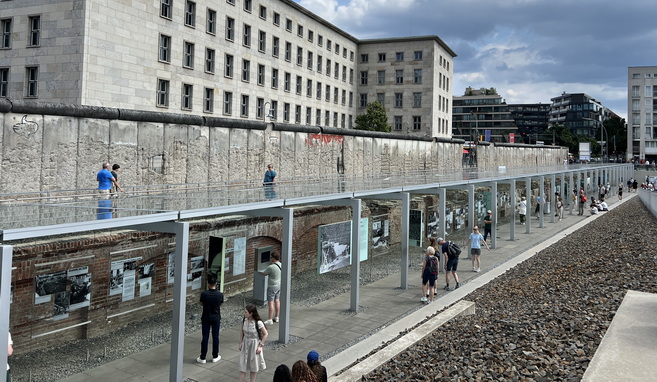 نمایشگاه فضای باز، شامل قسمت نسبتا طولانی از دیوار برلین در کنار نمایشگاهی از پانلهای تصویری است که تاریخ این محل را از 1933 تا 1989 توضیح میدهند.