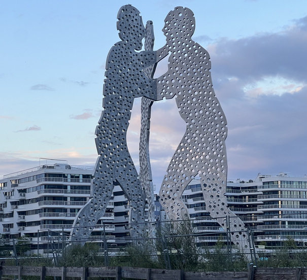 تصمیم گرفتیم تا قبل از تاریک شدن کامل هوا ، از تندیس فلزی Molecule Man که در وسط رودخانه اشپره ساخته شده است، بازدید کنیم. این تندیس شامل مجسمه سه انسان غولپیکر آلومینیومی سوراخدار 30 متری است که در نور خورشید و انعکاس آب جلوهای درخشان پیدا میکند. شکل بدنها به گونهای است که گویی در حال حرکت و ادغام با یکدیگرند.