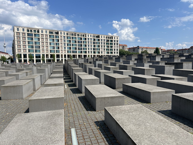 امروزه پوتسدامر پلاتس یکی از نمادهای برلین مدرن است در اطراف آن چندین مرکز خرید مدرن میزبان بازدیدکنندگان است. ما ناهار را در یکی از این رستورانها صرف کردیم و به سمت پاریسر پلاتس حرکت کردیم. تقریبا با پای پیاده این فاصله حدود 15 دقیقه است ولی می بایست در این مسیر چند مکان دیدنی را حتما بازدید کرد. نخستین مکان یادبود یهودیان کشتهشدهٔ اروپا نامیده می شود و مجموعهای از بلوکهای بتنی خاکستریرنگ با ارتفاعها و اندازههای متفاوت است. هنگامی که بازدیدکننده وارد مسیرهای میان بلوکها میشود در ابتدا ارتفاع بلوکها کم است و فضای باز حس میشود، اما هرچه پیش میروید، دیوارهها بلندتر میشوند، نور کمتر میشود، و احساس سردرگمی، تنهایی و اضطراب افزایش مییابد.. بسیاری از مواقع درلا به لای این بلوکهای سیمانی دوستان خود را با اینکه خیلی به شما نزدیک هستند گم می کنید و همین موضوع سبب می شود تا بازدیدکننده تجربهای عاطفی و درونی از فقدان، سردرگمی و وحشت قربانیان را حس کند. برای بازدید از این مکان نیم ساعت زمان لازم است. بازدید رایگان است.