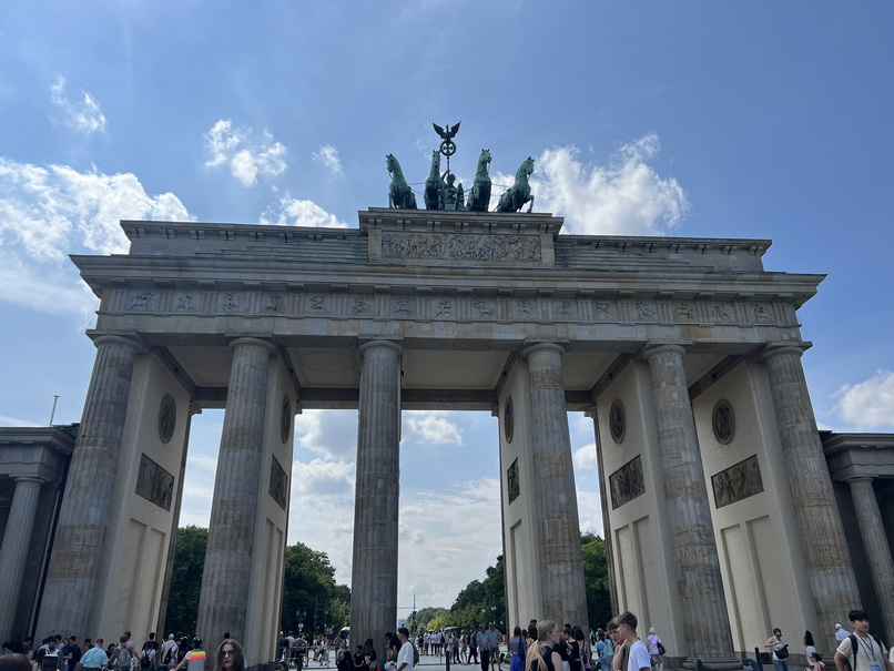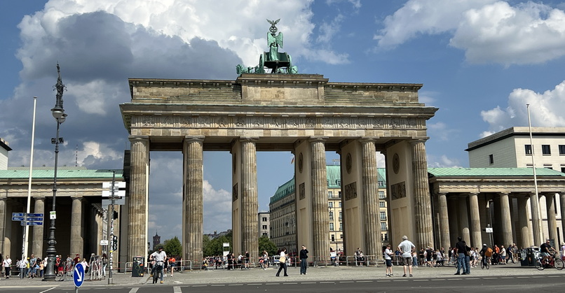 همینطور که به سمت میدان پاریس حرکت می کردیم، ابتدا به دروازه عظیم و معروف براندنبورگ رسیدیم. این دروازه با 26 متر ارتفاع و 65 متر طول، یکی از نمادهای شهر برلین است که در میدان پاریس و ابتدای خیابان Unter den Linden ساخته شده است. آنسوی دیگر این دروازه پارک تیرگارتن قرار دارد.