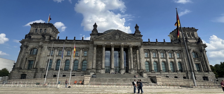 در نزدیکی دروازه براندنبورگ و کنار رودخانهی اشپره ساختمان رایشستاگ (Reichstag Building)قرار دارد و در حال حاضر محل پارلمان فدرال آلمان است. این بنا در بین سالهای ۱۸۸۴ تا ۱۸۹۴ برای میزبانی رایشستاگ امپراتوری آلمان ساخته شد. معماری باشکوه آن با گنبد عظیم شیشهای-فلزی نمادی از قدرت و وحدت امپراتوری تازهتأسیس آلمان بود. این بنا در زمان جنگ جهانی دوم تقریبا کاملا ویران شد و چون در زمان انفکاک آلمان، در محدوده حایل قرار داشت به مرمت آن بهای چندانی داده نشد. اما پس از فروپاشی دیوار برلین این بنا نیز مجددا مرمت و بازسازی شد. مخصوصا که گنبد شیشه ای عظیمی برای آن ساخته شد که با رزرو قبلی می توان از فراز آن نمای 360 درجه از شهر را تجربه کرد.