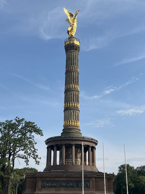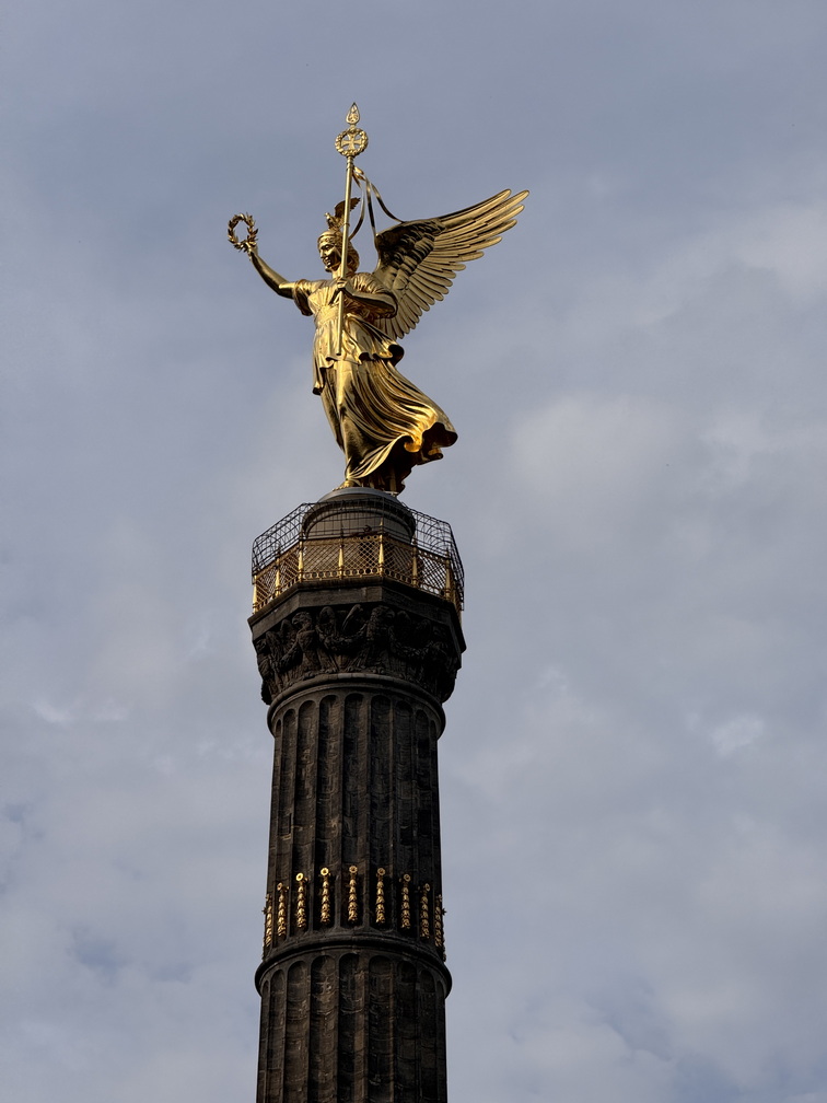 ستون پیروزی ، یادمانی در مرکز پارک تیرگارتن است که پس از پیروزی پروس بر دانمارک در جنگ شلسویگ برای بزرگداشت پیروزیهای ارتش پروس در قرن نوزدهم ساخته شد. ارتفاع کل بنا حدود ۶۷ متر است و جنس آن از سنگ گرانیت قرمز در پایه و ستونهای سنگی با تزیینات برنزی است. مجسمهای طلایی از ویکتوریا (Victoria)- الهه پیروزی یونانی- بر فراز این ستون قرار داده اند. در جریان بمبارانهای جنگ جهانی دوم، ستون آسیب دید اما تندیس طلایی و بیشتر سازه از تخریب کامل در امان ماند و بعدها مرمت و به نمادی از استقامت و وحدت برلین تبدیل شد. برای بازدیدکنندگان این امکان وجود دارد تا از 285 پله بالا بروند و از روی سکوی دیدبانی نمایی از شهر برلین را ببینند.
