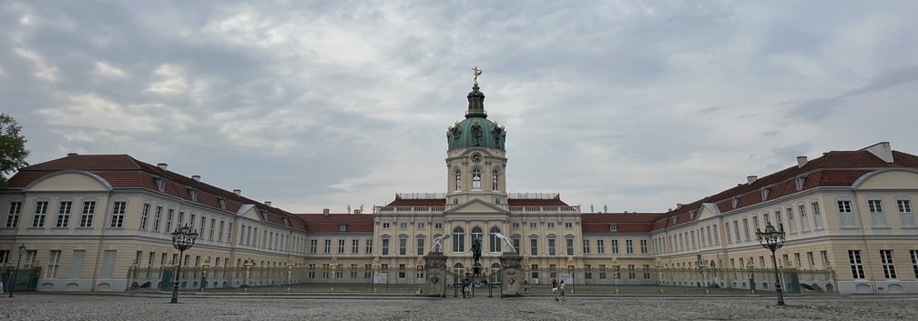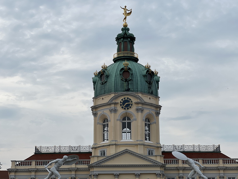 سپس به سمت کاخ شارلوتنبورگ که در غرب برلین قرار دارد به راه افتادیم. خوشبختانه در محوطه جلویی کاخ یک پارکینگ پیدا کردیم ولی چون ساعت بازدید به پایان رسیده بود دربهای کاخ بسته بود. این کاخ در سال 1695 به دستور ملکه سوفی شارلوت، همسر فردریش سوم ساخته شد. پس از مرگ زودهنگام ملکه در سال ۱۷۰۵، نام کاخ و منطقه به احترام او Charlottenburg گذاشته شد. در ابتدا کاخی تابستانی کوچک بود، اما بعدها جانشینان فردریش آن را گسترش و تبدیل به اقامتگاه سلطنتی بزرگ کردند. نمای اصلی با گنبد سبز مسی بلند و مجسمهٔ طلایی فورتونا (الهه بخت) بر فراز آن شناخته میشود. پشت کاخ، باغی بسیار زیبا و وسیع به سبک باروک فرانسوی طراحی شده است. ما فرصت بیشتری برای بازدید از این کاخ نداشتیم و لاجرم آنجا را ترک کردیم.