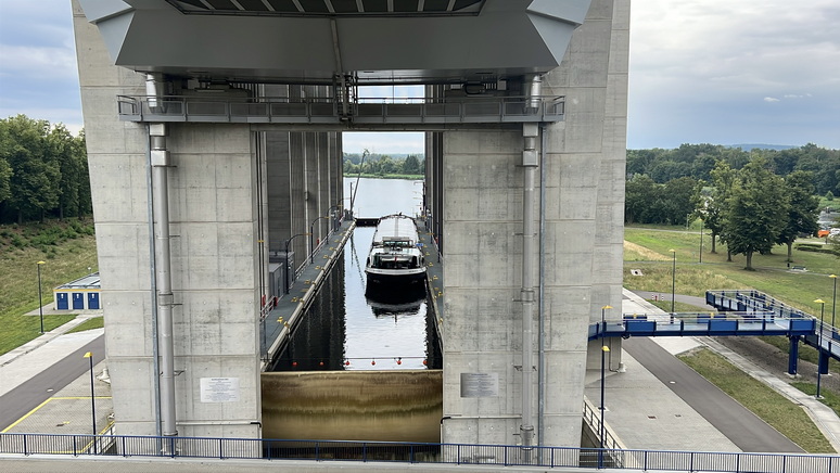 صبح برلین را به سمت شمال برلین و شهر Niederfinow (نیدرفیناو) ترک کردیم. تقریبا این فاصله 60 کیلومتری را کمی بیش از یکساعت و نیم طی کردیم و مستقیما به سمت آسانسورهای کشتی حرکت کردیم. برای بازدید از این دو آسانسور می بایست از باجه ای که در محوطه سرسبز کنار پارکینگ قرار دارد، بلیط تهیه کرد. سپس از مسیر مشخص شده می بایست از کنار سازه عظیم آسانسور به بالای تپه رفت. طرز کار این دو آسانسور که یکی قدیمی و دیگری در سالهای اخیر ساخته شده است بسیار جالب است که در زیر شرح مختصری از آن را می آورم.