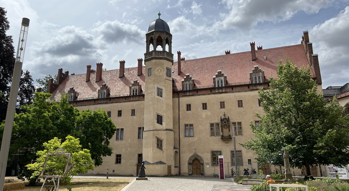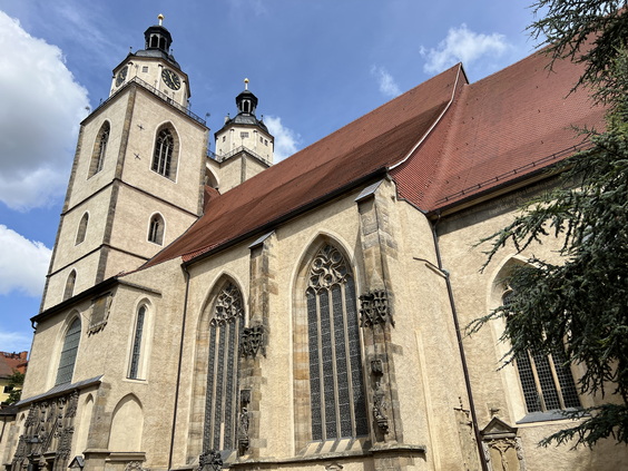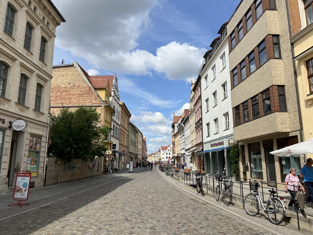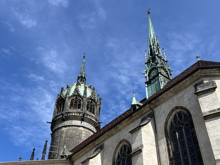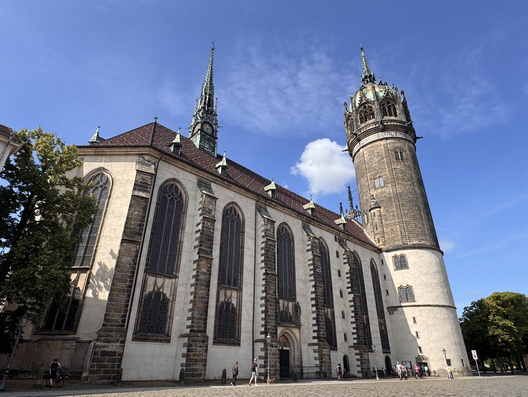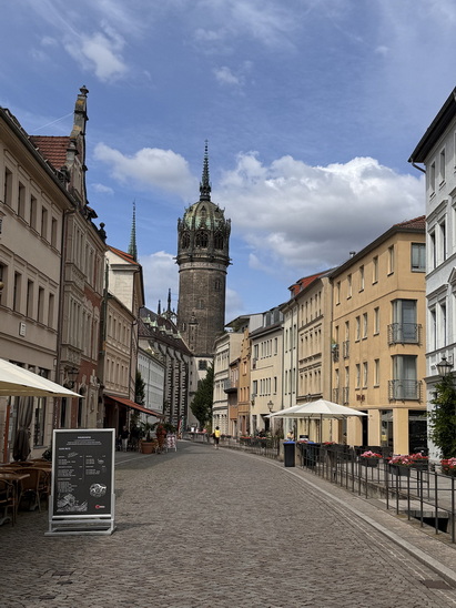 بعد از صرف صبحانه، پیاده به سمت کلیسا-قلعه ویتنبرگ حرکت کردیم. دو خیابان سنگفرش شده که تقریبا به موازات هم قرار دارند به این کلیسا منتهی می شوند و تقریبا تمام ساختمانهای قدیمی و سایتهای گردشگری این شهر در طول این دو خیابان قرار گرفته اند و به راحتی در دسترس می باشند.