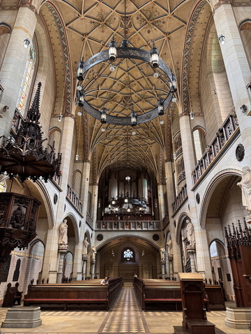 به سمت میدان Alexanderplatz حرکت کردیم. ابتدا از کنار کلیسا مارین کیرشه عبور کردیم که متاسفانه ساعت بازدید از آن به پایان رسیده بود و نتوانستیم داخل آن را ببینیم این کلیسا در قرن 13 ساخته شده و به خاطر نقش دیواری موسوم به “رقص مرگ Totentanz” معروف است. نمای بیرونی آجری قرمز با برج مرتفعی به ارتفاع ۹۰ متر مشخصهی اصلی بناست. برج کلیسا در سدهٔ ۱۸ میلادی با پوشش باروک بازسازی شد و همین باعث ترکیب سبکها در معماری آن شده است.