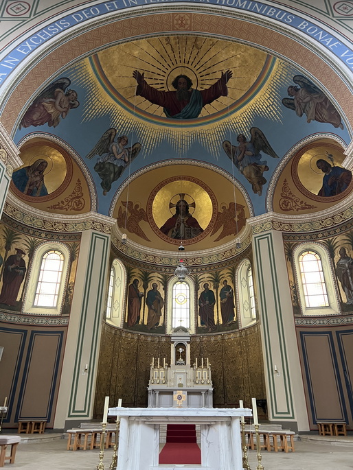 در کنار این کلیسا یک کلیسا جدید ساخته شد. درون کلیسای جدید، دیوارها از بیش از 22 هزار بلوک شیشهای آبیرنگ تشکیل شدهاند که نور آبی آرامشبخشی به فضا میبخشند. در مرکز محراب، مجسمهای از مسیح از جنس برنز قرار دارد. بازدید از این مجموعه رایگان است و به 45 دقیقه زمان نیاز دارد.