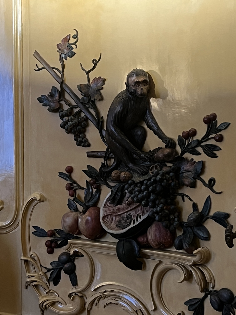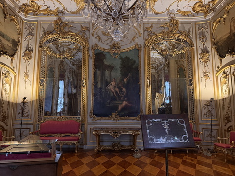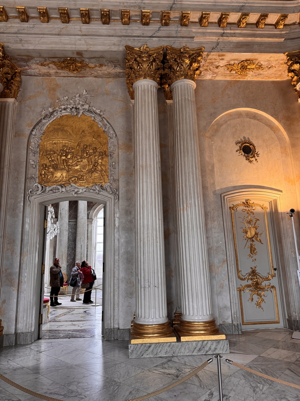 سالن مرمر بزرگترین و باشکوهترین تالار کاخ است که با ستونهای مرمر کورینتی و گنبدی مدور با نقاشیهای هنری طراحی شده است و محل برگزاری مهمانیها، کنسرتها و پذیرایی از میهمانان مهم بود. دیوارها با طلای براق، سنگ مرمر و نقاشیهای بزرگ استادان اروپایی تزئین شده اند. طراحی کتابخانه این کاخ با چوبهای گرانبها یکی از زیباترین اتاقها را به نمایش گذاشته است. فردریک علاقه بسیاری به مطالعه داشت به همین دلیل کتابخانه بسیار غنی با بیش از دو هزار جلد کتاب برای خود ساخته بود. یکی دیگر از اتاقها که مورد توجه بازدیدکنندگان است، اتاق جانوران و گیاهان است که با نقاشی و مجسمه های جانوران استوایی به زیبایی طراحی شده است. فردریک به موسیقی علاقه بسیاری داشت و خودش فلوت می نواخت. او اتاق بسیار باشکوهی برای تمرین و اجرا موسیقی ساخته بود و امروزه یکی از زیباترین اتاقهای کاخ است. این اتاق طوری طراحی شده تا کیفیت صدا در هنگام نوازنگی سازها بسیار خوب باشد. گالری نقاشی های کاخ شامل آثاری از روبنس، ون دایک، کاراواجو، رافائل و بسیاری دیگر از بزرگان این هنر است. پنجرههای کاخ طوری طراحی شدهاند که منظرهی باغها و مجسمهها را قاب بگیرند و بازدیدکنندگان از داخل کاخ بتوانند مناظر باغهای باروک، فوارهها و پاویلیونهای اطراف را ببینند. برای بازدید از این کاخ 2 ساعت زمان نیاز است.