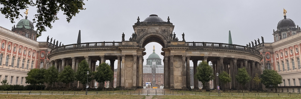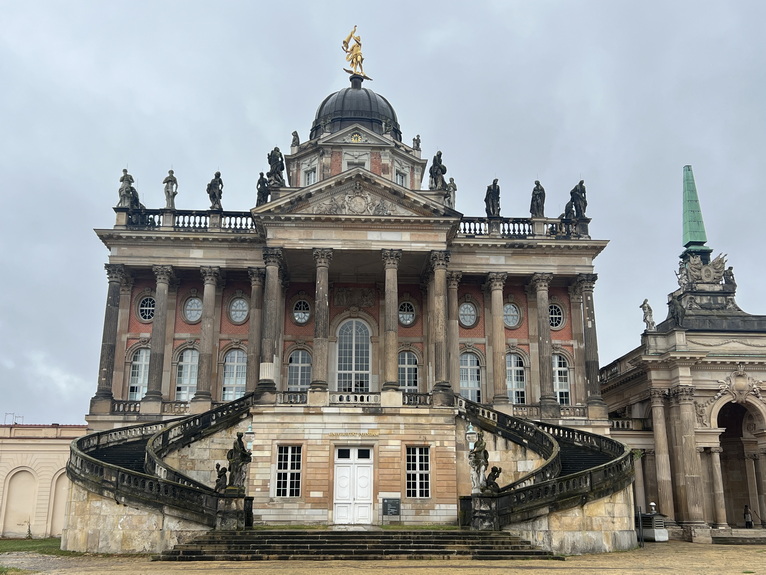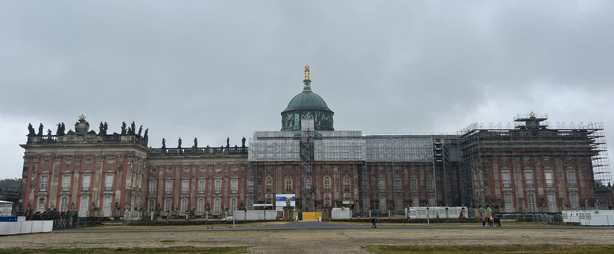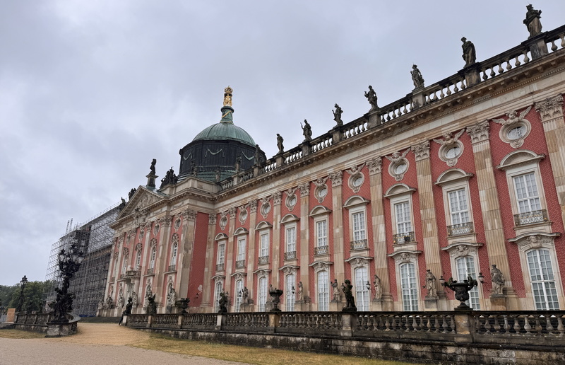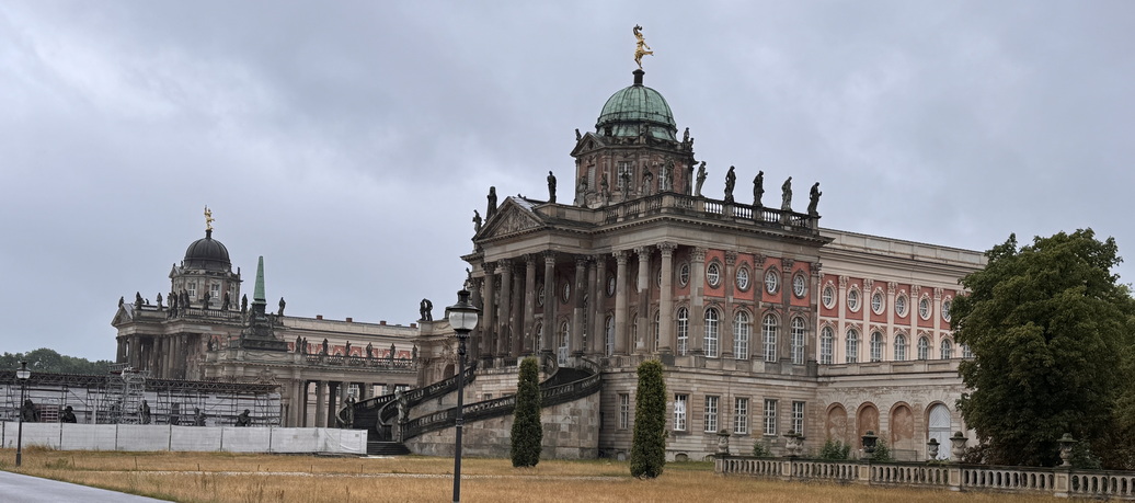 ما برای بازدید از بناهای آنسوی پارک سن سوسی سوار اتومبیل شدیم و در پارکینگ پشت دانشگاه پوتسدام پارک کردیم. دانشگاه در ساختمانهایی تاریخی مستقر شده که قدمت آنها به قرن 18 و 19 بازمیگردد. یکی از مهمترین بناهای داخل پارک سن سوسی، “کاخ جدید یا Neues Palais” نام دارد. قسمتی از آن اکنون متعلق به دانشگاه پوتسدام است و قسمتی دیگر موزه ای تاریخی است و بازدید از آن امکان پذیر است. نمای ساختمانهایی که اکنون به دانشگاه تعلق دارند بسیار زیبا هستند. ما نتوانستیم از داخل این ساختمانها بازدید کنیم ولی از مشاهده نمای آنها لذت بردیم.
