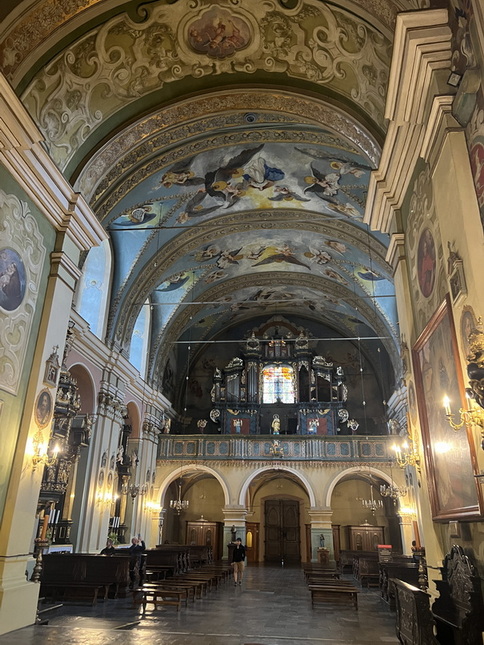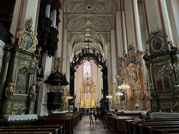 کمی جلوتر به کلیسای Holy Trinity Church می رسیم که یکی از مهمترین کلیساهای تاریخی این شهر است و بخشی از مجموعه کلیسای فرقه دومینیکنها (Dominican Order) بهشمار میآید و ترکیبی از سبک گوتیک و باروک می باشد. ساخت اولیه آن در قرن 13 شروع شد. نمای بیرونی به سبک گوتیک لهستانی، با طاقهای نوکتیز و پنجرههای بلند است. فضای داخلی بسیار بلند و الهامبخش، شامل یک سالن مرکزی و راهروهایی با ستونهای گوتیک می باشد.بسیاری از تزئینات داخلی، مانند محرابها، نقاشیهای دیواری و مجسمهها در قرن 17 و 18 افزوده شدهاند و حال و هوای باروک دارند. در آتشسوزی بزرگ سال 1850، بخشهایی از کلیسا و صومعه آسیب دیدند اما بعدها بازسازی شدند.