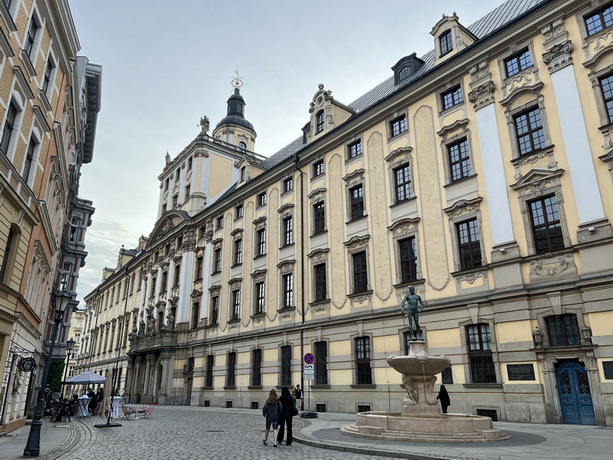 از کوچه های مجاور به سمت کتابخانه دانشگاه ورشو حرکت کردیم. این کتابخانه یکی از زیباترین و نوآورانه ترین باغ های شهری در لهستان را دارد که روی بام کتابخانه ساخته شده است. این مکان ترکیبی استثنایی از معماری مدرن و فضای سبز می باشد و امروزه یکی از محبوبترین نقاط استراحت و گردش در شهر به شمار میرود.