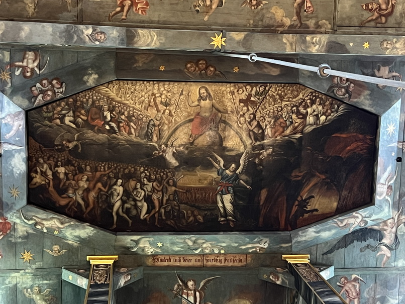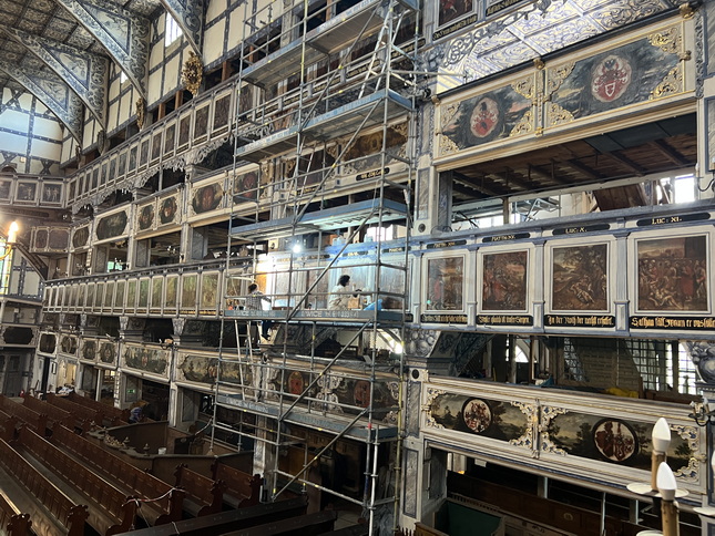 متاسفانه چون مراسم مذهبی در داخل کلیسا در حال انجام بود، ما نتوانستیم به محراب نزدیک شویم و از فضای پشت نمازگزاران قسمتهایی از کلیسا را دیدیم.