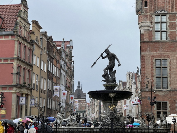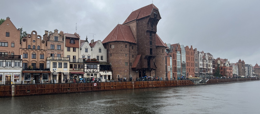 سپس به سمت مرکز شهر حرکت کردیم. هرچند که هوای بارانی سرعت حرکت ما را کم کرده بود ولی نهایتا توانستیم تا اندازه قابل قبولی قسمت مرکزی این شهرزیبا را ببینیم. شهر گدانسک در کنار رودخانه موتوا (Motława) که یکی از شاخههای رودخانه ویستولا است، قرار دارد و از قرون وسطی مسیر اصلی تجارت کهربا، چوب و غلات بود. در کرانهٔ غربی آن، ساختمانهای باروک و گوتیک مانند انبارهای غله، خانههای بازرگانان و انبارهای آجری ساخته شد. امروزه بخش معروفی از موتوا به نام اسکله طولانی Długie Pobrzeże یکی از جذابترین مکانهای پیادهروی و گردشگری شهر است.