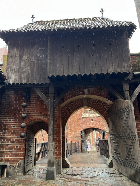 هوا به شدت بارانی بود که به قلعه رسیدیم. نمای این قلعه از پشت رود Nogat بسیار زیباست. خوشبختانه ساعت کاری هنوز تمام نشده بود و ما توانستیم بلیط ورود به قلعه را تهیه کنیم. دستگاه راهنمای صوتی که به هر بازدیدکننده داده می شود تقریبا بیشتر جزییات این بنا را در اختیار بازدید کننده قرار می دهد. هر چند این امکان وجود دارد تا از راهنمایان حرفه ای نیز استفاده کنید. این قلعه نیز مثل بسیاری دیگر از قلعه های دارای یک خندق بزرگ به دور بنای اصلی است که امکان دسترسی به داخل قلعه را فقط از طریق یک پل چوبی متحرک امکان پذیر می کند. درهای بسیار ضخیم چوبی و فلزی به خوبی ورودی قلعه را محافظت می کنند. قلعه از آجر قرمز ساخته شده و نمونهای کامل از معماری گوتیک شمال اروپا (Brick Gothic) است.