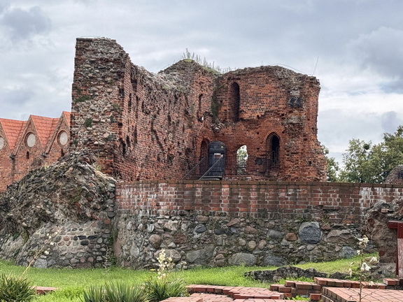 ابتدا به ویرانههای قلعه شوالیههای ترتوش در تورون (Teutonic Castle ruins in Toruń) که از مهمترین آثار قرون وسطی در شمال لهستان هستند رسیدیم. این قلعه ابتدا در قرن 13 ساخته شد و مرکز فرماندهی شوالیه ها بود ولی در اواسط قرن 15 با افزایش نارضایتی مردم از شوالیه ها این قلعه تخریب شد. اکنون بقایای این قلعه به شکل یک موزه روباز بخشی از شهر قدیمی تورون است که در لیست میراث جهانی یونسکو ثبت شده است. شهر قدیمی تورون با یک دیوار دفاعی آجری قرمز رنگ محافظت می شده که اکنون قسمتی از آن موجود است. هنوز تعدادی از برج ها و دروازه های قدیمی شهر وجود دارند و مرمت شده اند.