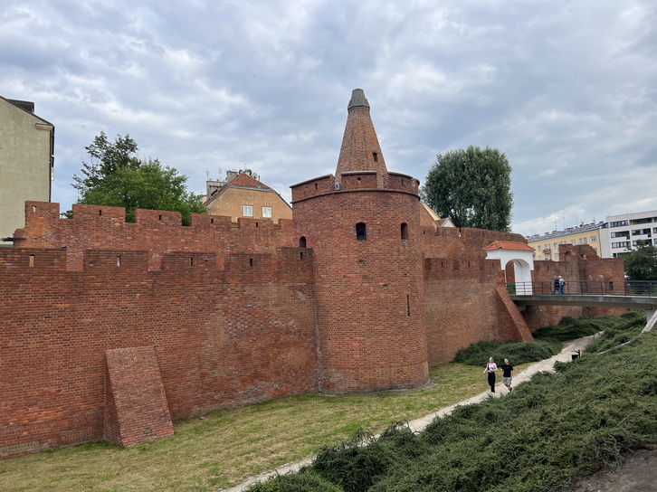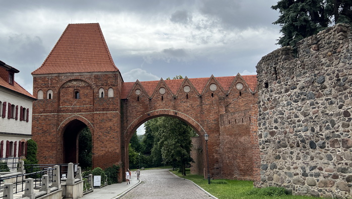 در امتداد رودخانه که پیش رفتیم به دروازه Mostowa Gate رسیدیم. این دروازه یکی از دروازه های اصلی شهر بوده و روبروی آن یک پل چوبی بر روی رودخانه ساخته شده بود که بیشتر عبور و مرور ساکنین، کاروانهای کالا از روی آن انجام می شد. این دروازه دارای برجکهای باریک و بلند از جنس آجرهای قرمز رنگ با طاقی قوسیشکل است.