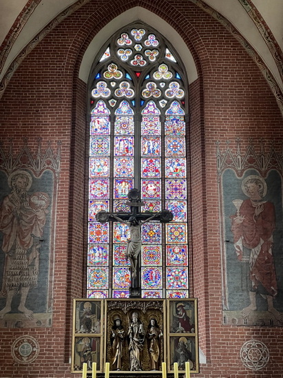 این کلیسا در اواسط قرن چهاردهم توسط راهبان فرانسیسکان ساخته شد. طبق اصول فرانسیسکان، کلیسا برج بلند ندارد؛ به جای آن سه سرپوش کوچک fléches (نوعی طاقک کوچک روی سقف یا دیوار) دارد. کلیسا به سبک گوتیک آجری ساخته شده است.
