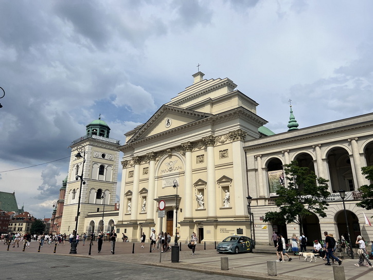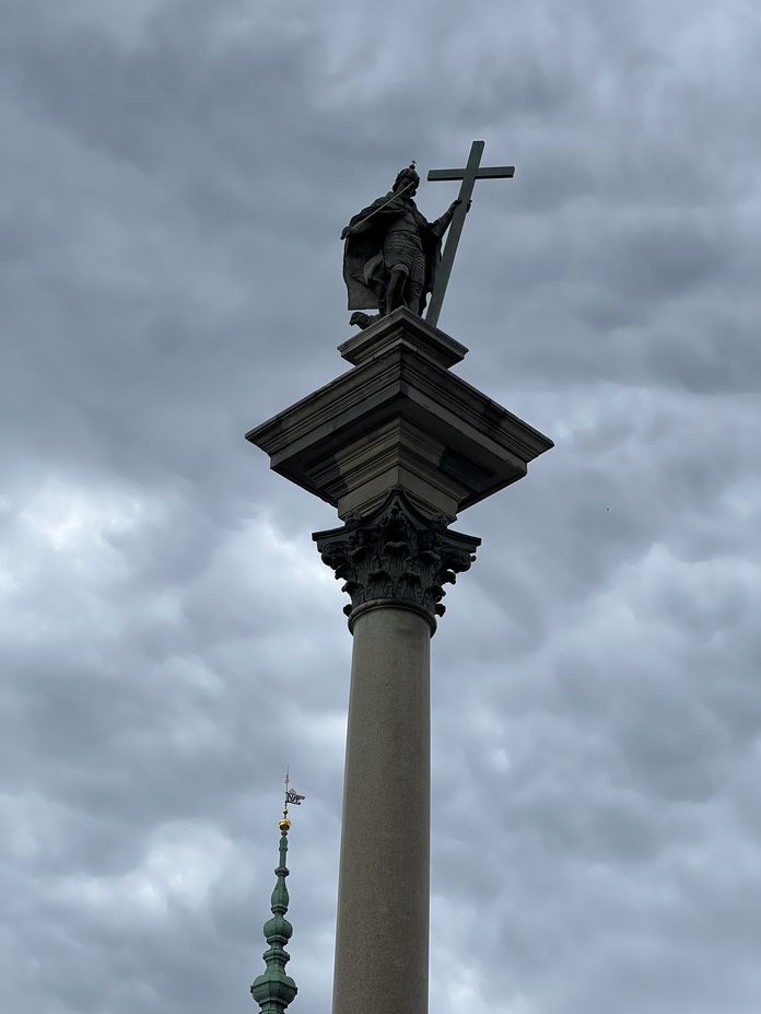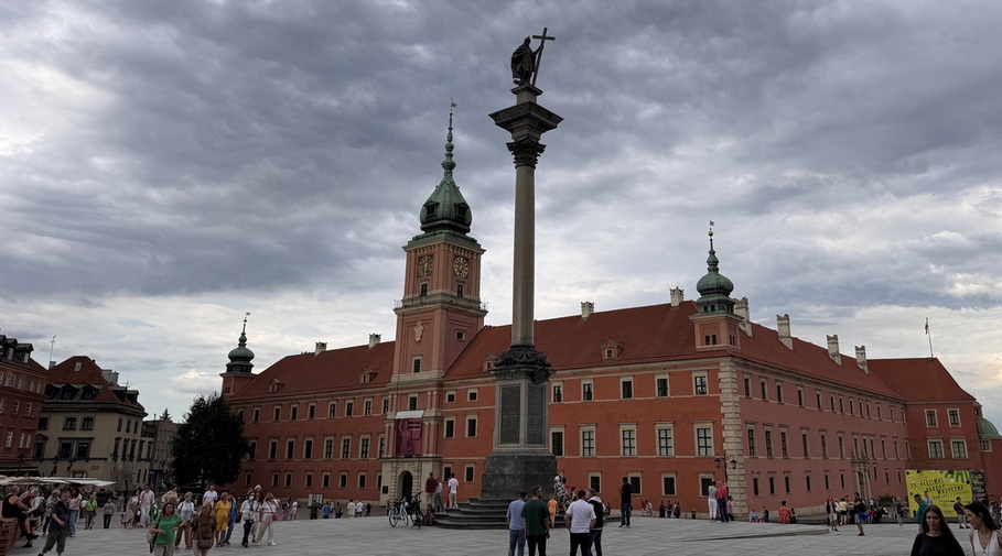 حدود ساعت 1:30 به سمت شهر ورشو حرکت کردیم. این مسیر تقریبا 250 کیلومتری را کمی کمتر از 3 ساعت طی کردیم و مستقیما به سمت بافت مرکزی شهر رفتیم. خوشبختانه موفق شدیم یک محل پارک مناسب برای اتومبیل پیدا کنیم و پیاده وارد میدان Castle Square شدیم. این میدان که درست در جلو کاخ سلطنتی قرار دارد یکی از نمادی ترین میدانهای شهر ورشو و در طول تاریخ، محل برگزاری جشنها، راهپیماییها، تجمعهای مردمی و همچنین رویدادهای سیاسی مهم بوده است. گفته می شود که این میدان در قرن 14 هم زمان با قلعه سلطنتی ورشو ساخته شد. در جریان جنگ جهانی دوم، میدان و قلعه بهشدت ویران شدند. پس از جنگ، با تلاش مردم ورشو و دولت، میدان بهطور کامل بازسازی شد و به نمادی از مقاومت و بازسازی ملی تبدیل گردید.