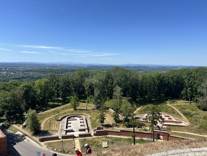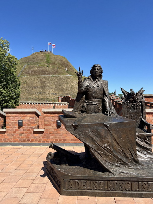 ابتدا به تپه کوشچوشکو رفتیم. این تپه مصنوعی در فاصله سالهای 1820 تا 1823 به افتخار قهرمان ملی لهستان، تادئوش کوشچوشکو (Tadeusz Kościuszko) ساخته شد. ژنرال کوشچوشکو ، مهندس نظامی و مبارز آزادیخواه لهستانی بود او فرمانده قیام ملی لهستان علیه سلطه روسیه و پروس در سال ۱۷۹۴ وهمچنین همرزم جرج واشنگتن در جنگ استقلال آمریکا علیه بریتانیا بود و به نماد شجاعت، آزادی و استقلال برای لهستانیها تبدیل شد. در قرن نوزدهم، امپراتوری اتریش دژهایی نظامی پیرامون تپه ساخت که امروزه باقی ماندهاند بخشی از این استحکامات اکنون به موزه، نمایشگاه و فضاهای فرهنگی تبدیل شدهاند. از بالای تپه، منظرهای باشکوه از کل شهر کراکوف و در روزهای صاف حتی کوههای تاترا قابل مشاهده است. ارتفاع تپه از سطح زمین حدود 34 متر است که با یک مسیر مارپیچی می توان به بالای آن رسید. برای بازدید از تپه و همچنین نمایشگاه مجاور آن حدود یک ساعت زمان نیاز است.