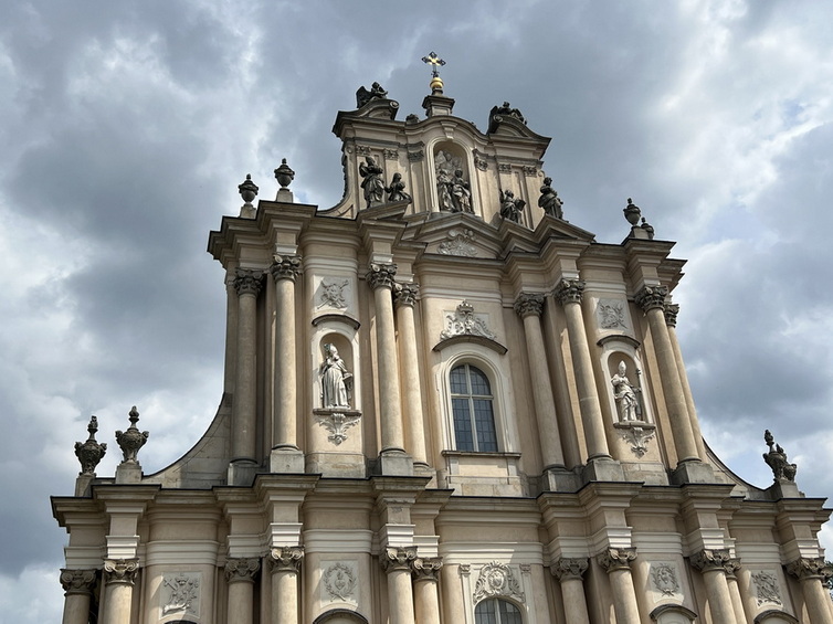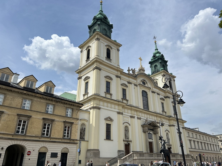 تقریبا ساعت 12 ظهر بود که اتومبیل را نزدیک دانشگاه ورشو پارک کردیم و پیاده به سمت Saxon Garden حرکت کردیم در میانه راه از کلیسا Holy Cross Church بازدید کردیم که در قلب خیابان Krakowskie Przedmieście قرار دارد. در تاریخچه این کلیسا آمده است که در ابتدا، در اواسط قرن 15، یک کلیسای کوچک چوبی در این مکان وجود داشت و در نیمه دوم قرن 17، با حمایت جامعه مذهبی و کمکهای مالی، کلیسای بزرگتری به سبک باروک ساخته شد. در قرن 18 برجها و نمای باروک با تزئینات کلاسیک به آن اضافه شد. در قیام ورشو (1944) کلیسا بهشدت تخریب شد. پس از جنگ بازسازی شد و دوباره شکوه تاریخی خود را بازیافت. نمای اصلی شامل دو برج دوقلو باروک با تزئینات زیبا است. روبهروی کلیسا، یک مجسمه معروف از مسیح در حال حمل صلیب قرار دارد که از نمادهای ورشو به شمار میآید. فضای داخلی کلیسا مجلل و پر از تندیسها، محرابهای فرعی و نقاشیهای مذهبی است. یکی از برجستهترین ویژگیهای این کلیسا، قلب فردریک شوپن است که در ستونی درون کلیسا دفن شده است. بدن او در پاریس آرام گرفته، اما بنا به وصیتش قلبش به ورشو بازگردانده شد. برای بازدید از این کلیسا حداقل نیم ساعت اختصاص دهید.