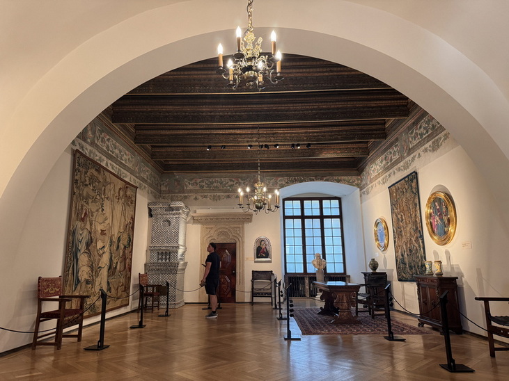 بیشتر تابلوهای نقاشی اروپایی متعلق به قرنهای 15 تا 18 (عمدتاً ایتالیایی و هلندی) هستند. مبلمان حکاکیشده، میزهای سلطنتی، آینههای بزرگ، و شمعدانهای طلایی از اشیاء با ارزش این مجموعه می باشند. سقفها اغلب چوبی و با هنر رنسانس تزئین شدهاند.