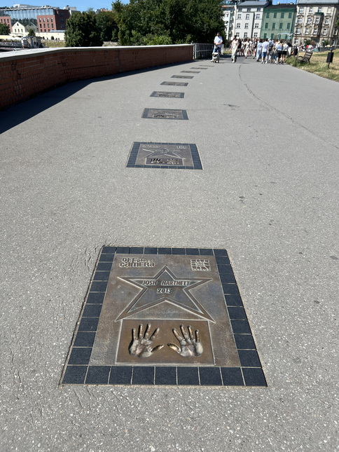 مسیر پیاده راهی که بین قلعه و رودخانه قرار دارد با الهام از پیاده رو مشاهیر در هالیوود، لوحه های برنزی بر کف زمین کار گذاشته شده است که نام هنرمندان به همراه ستاره ها و عرصه فعالیت آنها را به نمایش گذاشته است. در بعضی از این لوحهها آثار دستان افراد قرار دارد. یعنی اثر دست هنرمندان نیز به همراه نامشان دیده میشود.