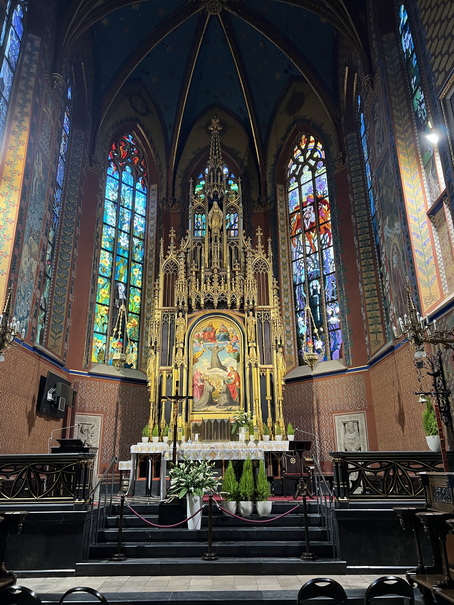 در نزدیک این رستوران کلیسا Saints Peter and Paul Church یا کلیسای دوستان رسولان پطرس و پولس قرار دارد. نمای خارجی دو طبقه دارد، از سنگ دولومیت ساخته شده و شامل نقشها و مجسمههایی از قدیسان یسوعی است. مقابل ورودی کلیسا، نرده یا حصاری است که روی پایههای آن مجسمههای ۱۲ رسول قرار دارند. ساخت بنا بین سالهای ۱۵۹۷ تا ۱۶۱۹ بنا به خواست شاه زیگموند سوم وازا (Sigismund III Vasa) برای مرتبه جامعه عیسی (یسوعیان یا Jesuits) ساخته شد.
