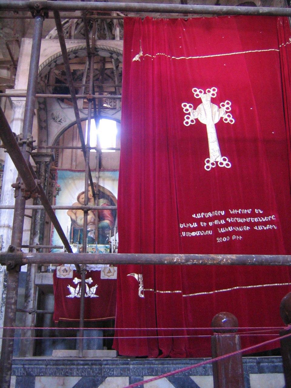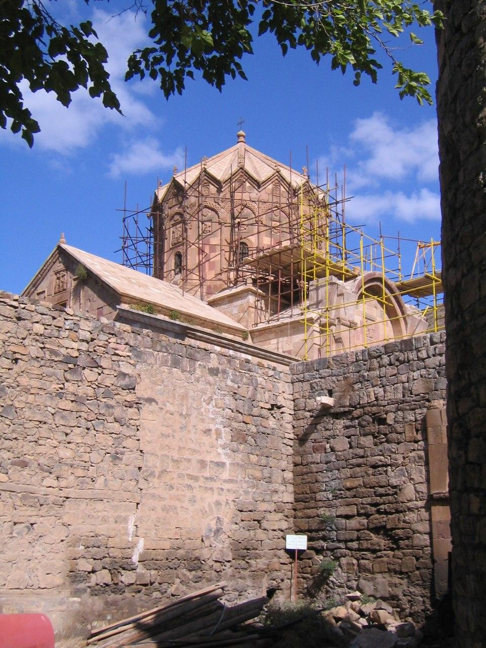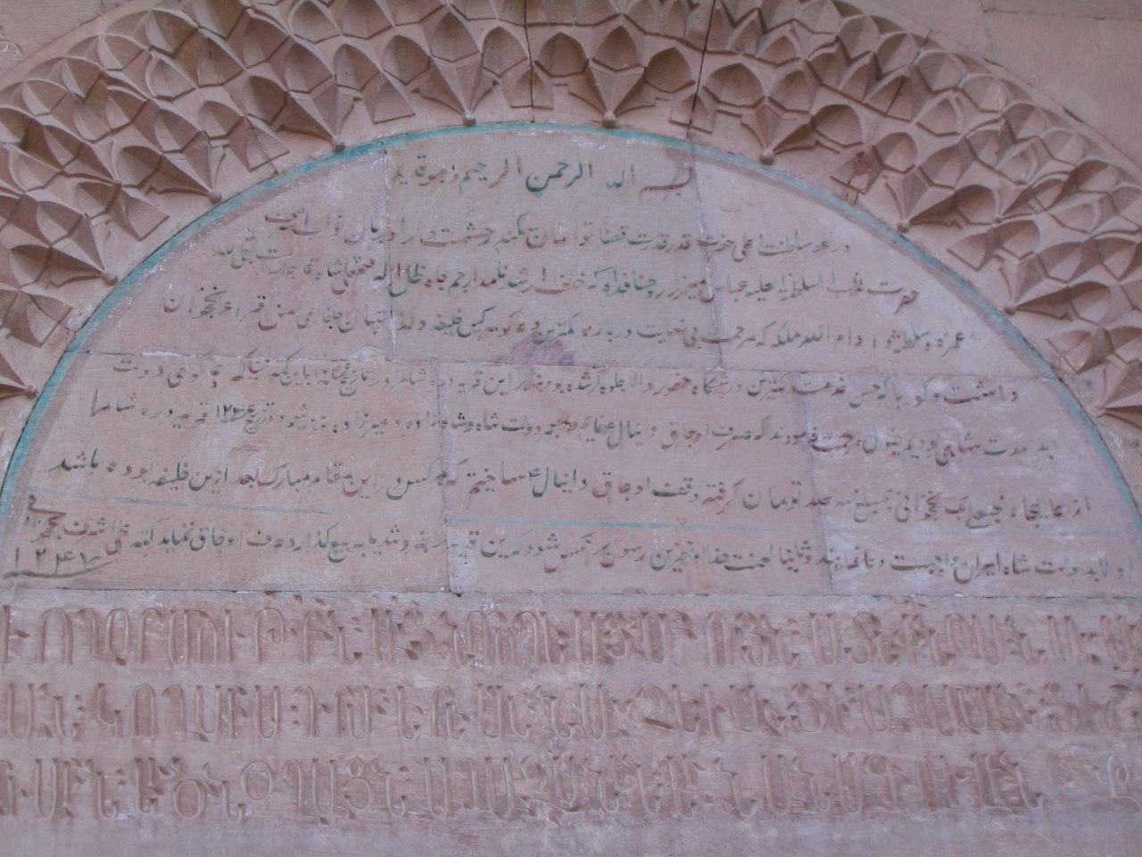 این کلیسا از دیرباز مورد توجه ارامنه قرار داشته و در قسمت جنوبی آن مدرسه ای جهت فراگیری علوم دینی ساخته شده است که اکنون این اتاقها در حال مرمت و نوسازی هستند و احتمالا جهت اقامت زائرین در نظر گرفته خواهد شد.بر سردر ورودی کلیسا کتیبه ای به زبان فارسی وجود دارد که در سال 1247 قمری نوشته شده و بازگو کننده اتفاقی تاریخی در سال 1246 قمری است که در آن سال عباس میرزا پسر فتحعلی شاه قاجاربعد از گذر، این مکان را – که به قریه دره شام معروف بوده – به قیمت سه صد(سیصد)تومان از والی آنجا(محبعلی بیک نخجوانی) می خرد و وقف این کلیسا( که در آن موقع تحت خلافت شخصی به نام سرکیس بوده) می کند. سپس در قسمتی از این کتیبه به خلفای بعدی امر می کند که : اولاً واجب است به دولت شاه ایران دعا نمایند و ثانیاً نفرین خدا بر کسی باشد که این روستا را بفروشد یا صرف کارهایی غیر عبادی کند.