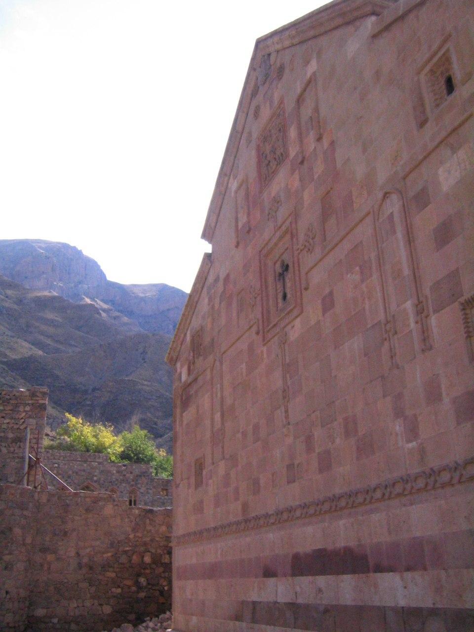 در چهار دیوار خارجی کلیسا تعداد زیادی نقش برجسته صلیب با طرحهای مختلف به چشم می خورد که اکثرا نوشته هایی به خط ارمنی در زیر آن وجود دارد.در ضلع شرقی نقش برجسته سنگسار کردن استپانوس مقدس، در ضلع غربی مصلوب شدن حضرت مسیح،در ضلع شمالی صعود حضرت مسیح و در ضلع جنوبی نیز در نقش برجسته ای دیگرحضرت مسیح را در آغوش مریم مقدس می بینیم در حالی که زن و مردی در کنار ایشان زانو زده اند.