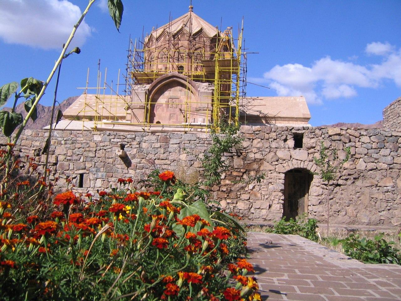 از کنار رود ارس به سمت غرب ادامه مسیر دادیم وپس از16کیلومتر و در 3 کیلومتری کرانه جنوبی ارس به کلیسا سن استپانوس رسیدیم . کلیسایی قدیمی ، که در دره ای به نام دره شام قرار دارد.تا پیش از جنگ جهانی اول همه ساله هزاران زائر مشتاق به زیارت این کلیسا می آمدند. نام این کلیسا از نام استپانوس، شهید اول راه مسیحیت گرفته شده است.این کلیسا در دژی استوار واقع شده است و به مجموع این” دژ وانگ سن استپانوس” می گویند.این وانگ همانند سایر وانگ های ارمنیان محل اجتماعات طلاب ،خطاطان، نقاشان، نویسندگان ،مورخین و دانشمندان بود که برخی از این آثار را می توان درساختمان کلیسا مشاهده کرد.مساحت این وانگ 450 متر مربع است .گرداگرد وانگ،باروئی سنگی و مرتفع کشیده شده و هفت برج مدور در چهار گوشه بارو، وسط بارو شرقی و دو طرف دروازه ورودی بنا شده است. محوطه خارجی کلیسا سرسبز با درختان کهنسال است.جوی آبی که از چشمه ای در دامنه کوه سرچشمه می گیرد پس از گذر از کنار کلیسا به استخری بزرگ می ریزد.این مجموعه در ایام تعطیل ، پذیرای گردشگرانی است که از نقاط مختلف ایران برای گردش و همچنین انجام برخی مراسم مذهبی به این محل سفر می کنند.