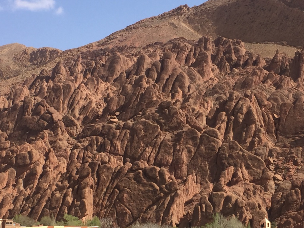 از این حدو میتوانید به سمت شهر فس حرکت کنید. اگر این مسیر را در یک روز بروید ۱۰ ساعت باید رانندگی کنید اگر این مسیر را در ۲ روز طی کنید از جاذبه های طبیعی زیادی میتوانید بازدید کنید. اولین شهر بزرگی که سر راهتان قرار دارد ورزازات Ouarzazate است. یکی از بزرگترین استودیوهای فیلمسازی جهان در این شهر قرار دارد. از این شهر به سمت شهر میدلت midelt حرکت کنید و پس از طی ۲ ساعت از Fingers Valley و Dades Gorges دیدن کنید. این ۲ دره که در یک مسیر قرار دارند از جاده اصلی خارج هستند و رفت و برگشت به آنها حدود یک ساعت و نیم وقتتان را میگیرد. پس از بازگشت به مسیر اصلی و طی ۱ ساعت به شهر تینغیر Tinghir میرسید و میتوانید از تنگه تودغاTodgha Gorge دیدن کنید. بعد از ۳ ساعت رانندگی به شهر میدلت میرسید. میتوانید شب را در میدلت توقف و صبح زود به سمت فس حرکت کنید. بعد از ۲ ساعت رانندگی به شهر ایفرین Ifrane میرسید. پیش از رسیدن به این شهر از جنگل سدر Cedar Forest عبور خواهید کرد که پر از میمون مکاک هست و میتوانید از نزدیک و کنار جاده آنها را تماشا کنید. شهر ایفرین بسیار زیبا است و سبک معماری آن به علت آب و هوای کوهستانی و سرد با دیگر مناطق کشور مراکش متفاوت است. بد نیست حداقل برای خوردن یک قهوه در این شهر توقف کنید و از مجسمه های شیر سنگی که نماد این شهر هستند دیدن کنید. از ایفرین تا فس ۱ ساعت فاصله است.