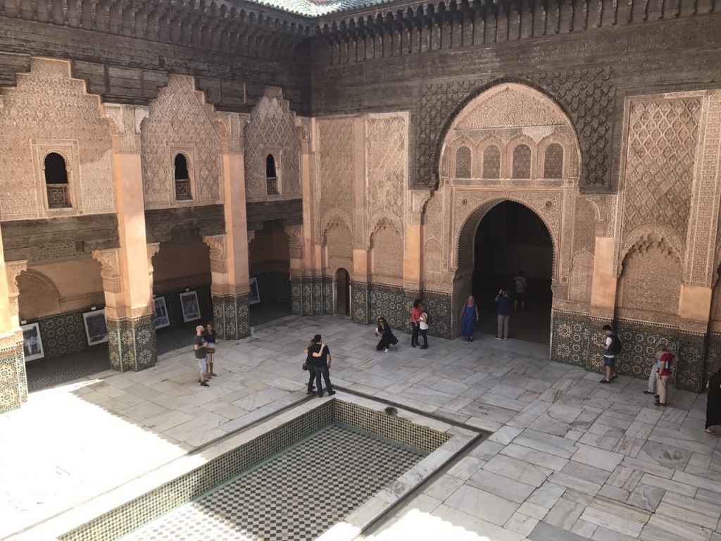مدرسه بن یوسف Medersa Ben Youssefمدرسه علوم دینی که در سال ۱۵۶۵ توسط سعدیون ساخته شده، بزرگترین دانشکده الهیات در کشور مراکش است. فضاهای اقامتی به سبک معماری اسلامی در اطراف حیاطهای اندرونی قرار گرفتهاند. کاشیکاری نفیس، سقف مقرنسکاری شده و کتیبههای به خط کوفی که بهعنوان تزئینات داخلی در بسیاری از بخشهای عمارت به کار رفتهاند، از نکات برجسته این بنا هستند.