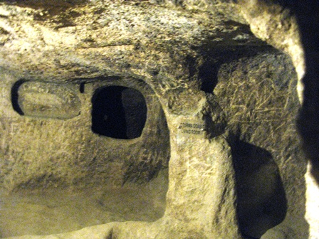 برای بازدید از شهر زیرزمینی Kaymakli به سمت جنوب حرکت کردیم و بعد از ۲۵ کیلومتر به شهر کایماکلی رسیدیم. شهر زیرزمینی درست در شرق خیابان اصلی قرار دارد. باید ابتدا از میان بازارچه سنتی و سوغاتی فروشان گذر کنید تا به درب اصلی شهر زیر زمینی که بیشتر شبیه به ورودی غار علیصدر است برسید. بلیط ورودی ۱۵ لیر است. این شهر زیر زمینی که گفته می شود در فاصله قرون ۶ و ۸ میلادی ساخته شده روزگاری بیش از ۳۰۰۰ نفر جمعیت داشته است. این افراد مسیحیانی بودند که پس از حمله اعراب برای در امان ماندن به زیر زمین پناه بردند. هم اکنون شما می توانید به لطف نورپردازی بسیار خوب و علایم راهنمایی که در این مجموعه نصب شده است از چهار طبقه(از مجموع ۷ طبقه موجود) بازدید کنید. بهتر است دو ساعت زمان برای این مجموعه در نظر بگیرید. در نظر داشته باشید که این شهر نیز در ثبت میراث جهانی است. البته شهر زیر زمینی دیگری نیز کمی جلوتر (یعنی ۱۵ کیلومتر) در مجاور شهر Derinkuyu واقع شده است که گفته می شود جمعیت بیشتری را در خود جای می داده است.